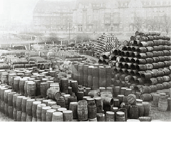 Ursprung der Hans Friedsam Fassverwertung GmbH & Co. KG ist bis in das 19. Jahrhundert zurück zu verfolgen. Der Grossvater bzw. Urgrossvater der heute tätigen Generationen war als Küfermeister bei einer Düsseldorfer Brauerei beschäftigt. 1902 beschloss Peter Friedsam, sich selbstständig zu machen, gründete seinen eigenen Küferbetrieb und liess sich an der Münsterstrasse in Düsseldorf nieder. Noch heute dürfte vielen Landeshauptstädtern der damalige Lagerplatz in Erinnerung sein, mit seinen hohen Fasstapeln ein unübersehbares Merkmal in diesem Stadtteil. |